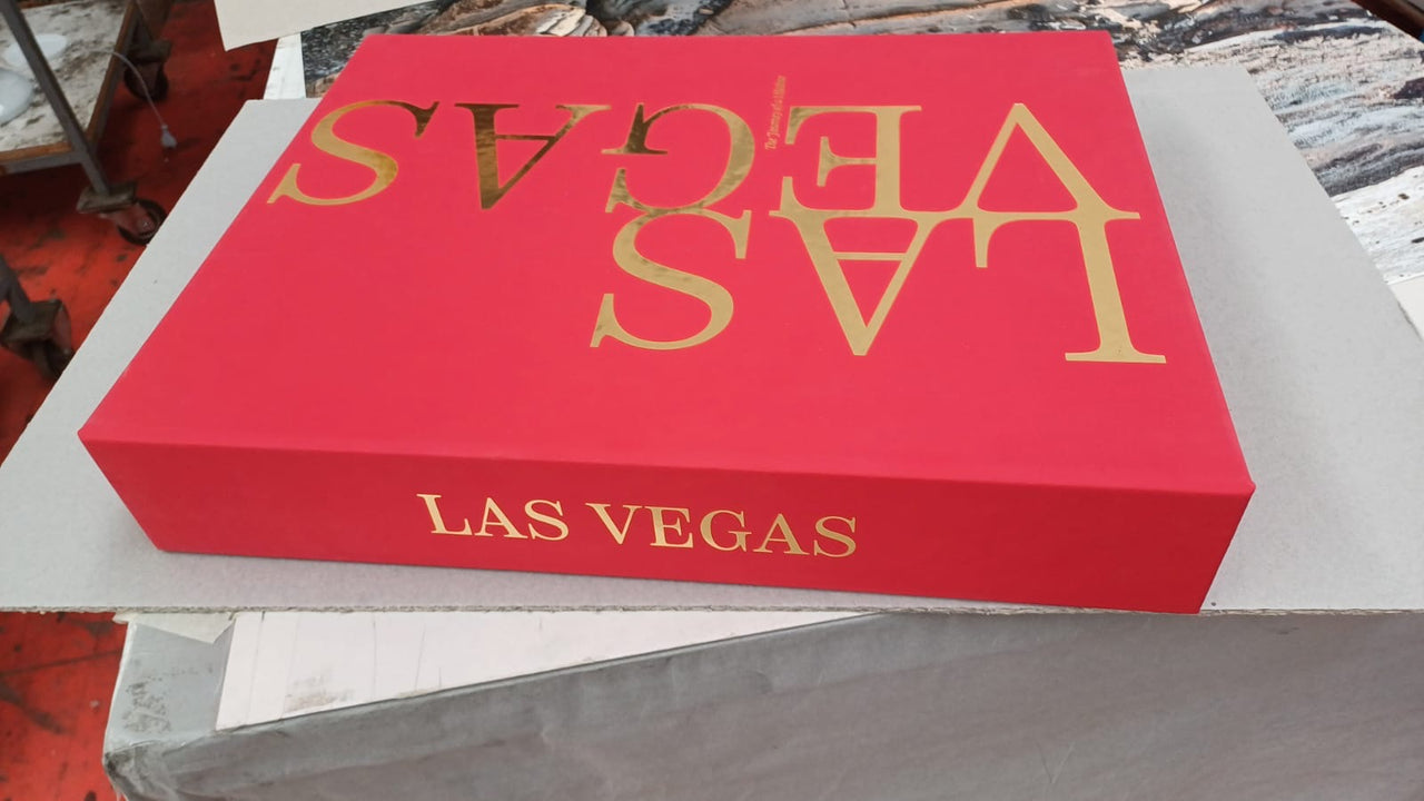This book is handmade in Italy, weighing 8kg / 18 lbs and comes with it a 100% leather case. The Las Vegas Book has stunning size of 39 x 33 x 6 in cm and 16 x 13 x 2,3 in inches. Making it not only a piece of Las Vegas history, but also a piece of furniture.
